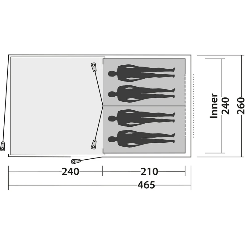 Relatief ruime en relatief lichte instap-kampeertent voor maximaal vier personen